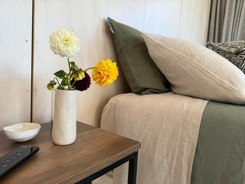 At Fern hut we take pride in supporting our neighbours, offering a range of exceptional amenities which have been sourced from local NZ makers from the huts construction to the sofa and coffee cups inside.